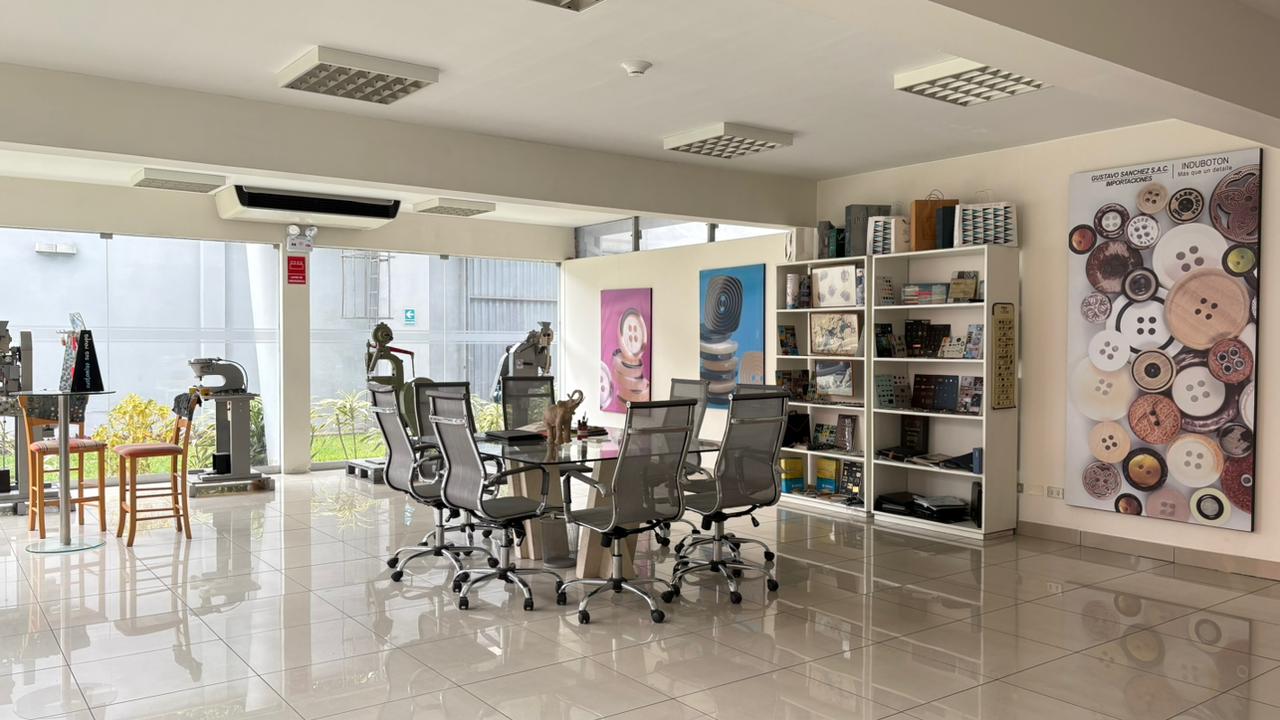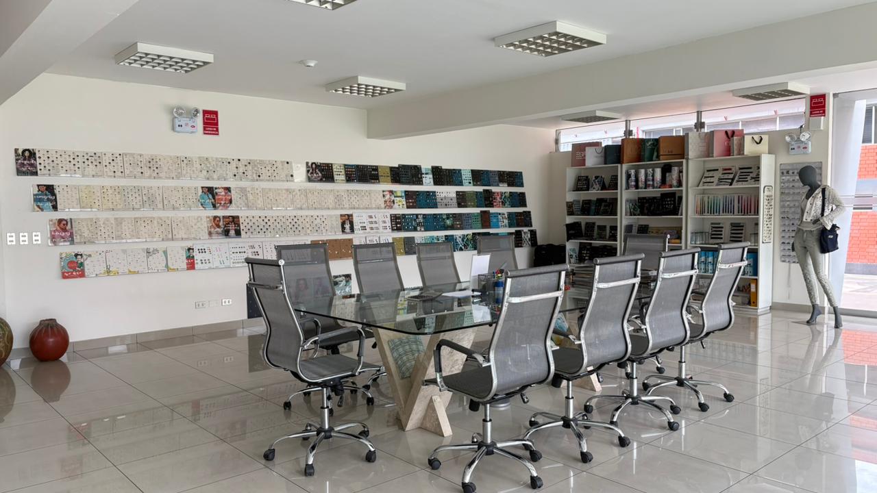 Nuestra sede en el distrito de Ate abarca 8,000 m² donde operan nuestras oficinas, almacenes y una moderna infraestructura de maquinaria. Contamos con un laboratorio de teñido, equipos láser para el grabado de botones, máquinas de rebobinado y tecnología especializada para el corte y fusión de entretelas.